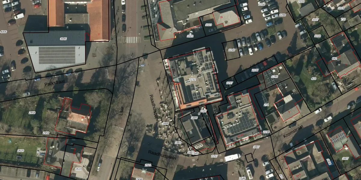 Het perceel waarop Raadhuisplein 11 staat heeft een oppervlakte van 811 m². Dit is een groot perceel. De perceeloppervlakte wordt geregistreerd door het Kadaster. Gedetailleerde informatie over de maten van dit perceel kunt u vinden in het rapport Kadastrale kaart met maatvoering van Raadhuisplein 11.