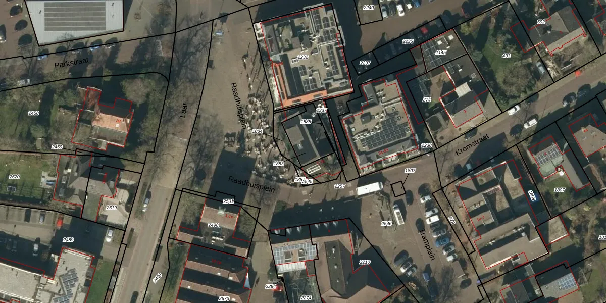 Het perceel waarop Raadhuisplein 7 staat heeft een oppervlakte van 198 m². Dit is een middelgroot perceel. De perceeloppervlakte wordt geregistreerd door het Kadaster. Gedetailleerde informatie over de maten van dit perceel kunt u vinden in het rapport Kadastrale kaart met maatvoering van Raadhuisplein 7.