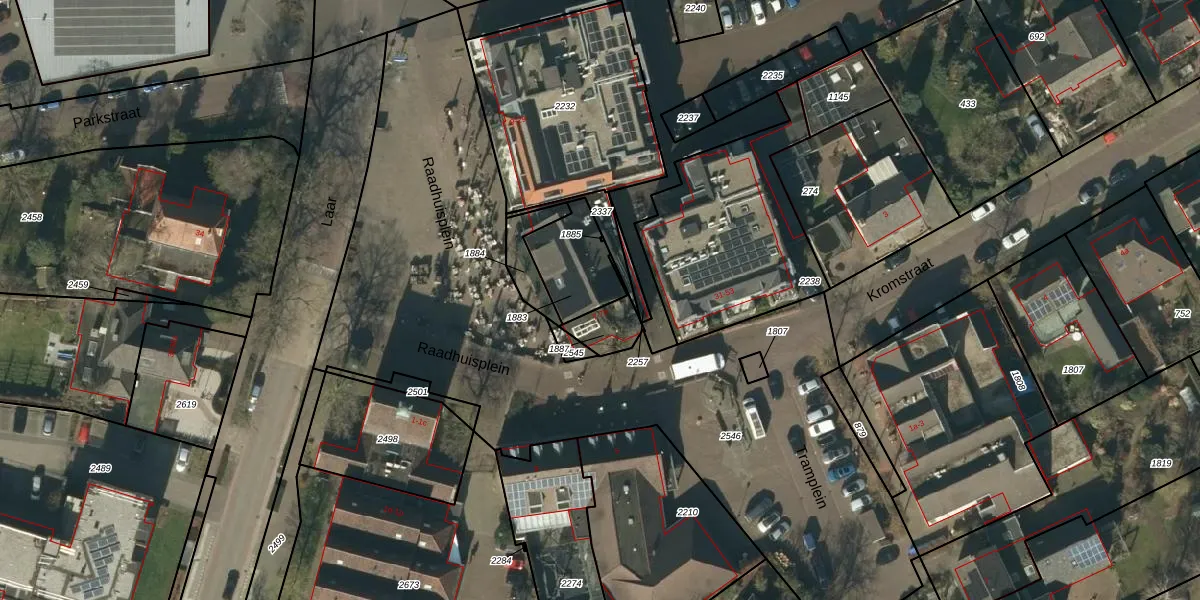 Het perceel waarop Raadhuisplein 7-b staat heeft een oppervlakte van 198 m². Dit is een middelgroot perceel. De perceeloppervlakte wordt geregistreerd door het Kadaster. Gedetailleerde informatie over de maten van dit perceel kunt u vinden in het rapport Kadastrale kaart met maatvoering van Raadhuisplein 7-b.
