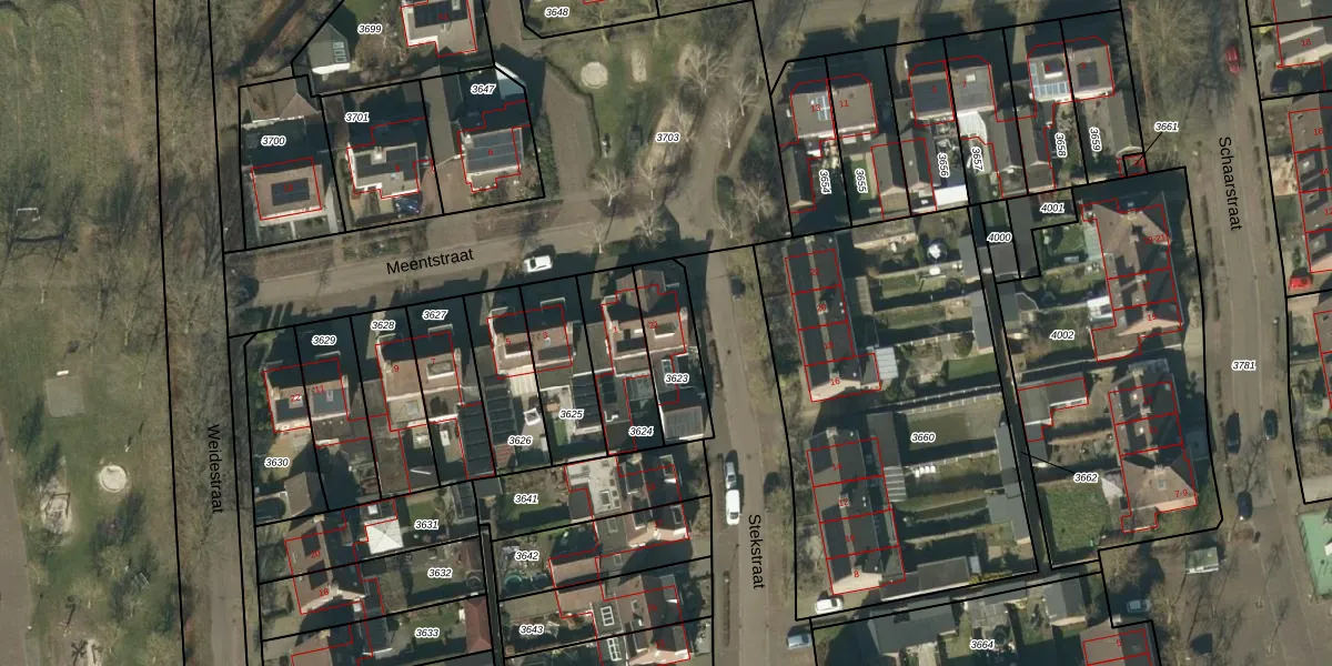 Gebruik de zoekbalk of klik op een perceel voor informatie over de adressen binnen dit perceel.