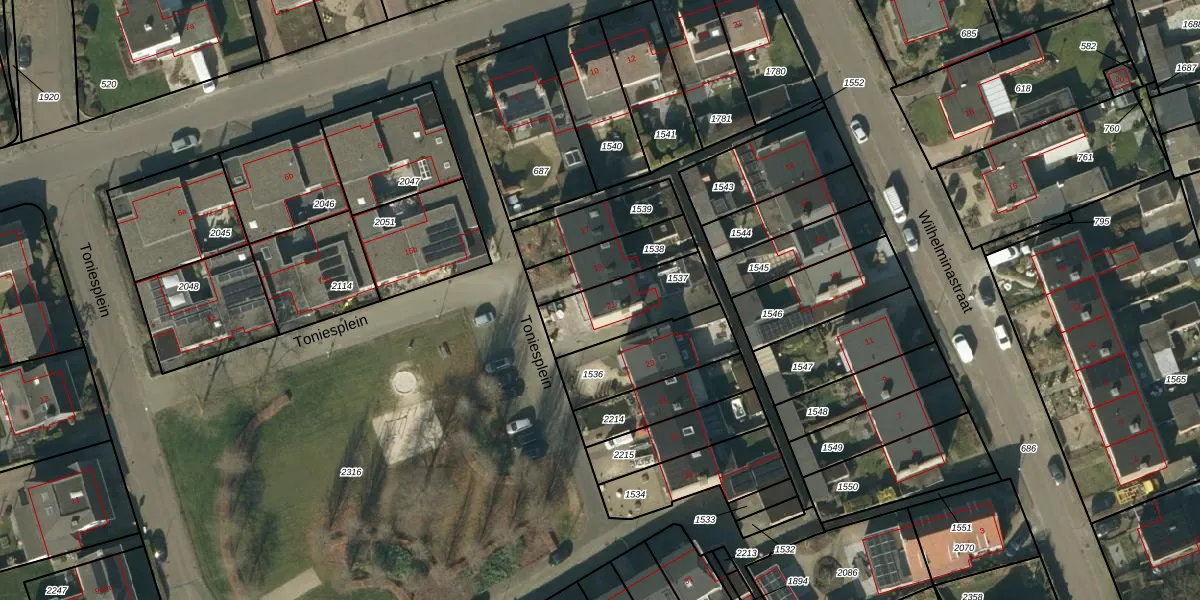 Het perceel waarop Toniesplein 21 staat heeft een oppervlakte van 263 m². Dit is een middelgroot perceel. De perceeloppervlakte wordt geregistreerd door het Kadaster. Gedetailleerde informatie over de maten van dit perceel kunt u vinden in het rapport Kadastrale kaart met maatvoering van Toniesplein 21.