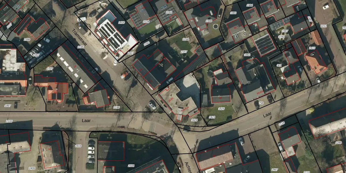 Tramstraat 19 is gelegen op kadastraal perceel NTR00F1424. Deze kadastrale aanduiding is uniek en wordt gebruikt door het Kadaster om eigendomsrechten en andere zakelijke rechten vast te leggen. Het perceel maakt onderdeel uit van de kadastrale gemeente Nistelrode.