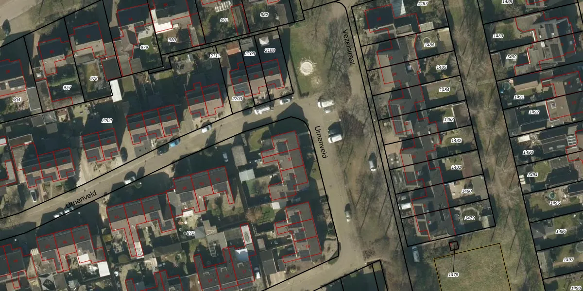 Het perceel waarop Urnenveld 29 staat heeft een oppervlakte van 6010 m². Dit is een zeer groot perceel. De perceeloppervlakte wordt geregistreerd door het Kadaster. Gedetailleerde informatie over de maten van dit perceel kunt u vinden in het rapport Kadastrale kaart met maatvoering van Urnenveld 29.