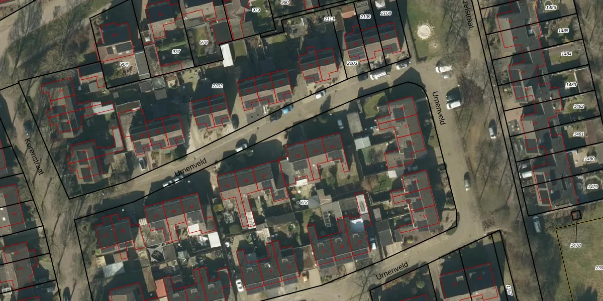 Het perceel waarop Urnenveld 35 staat heeft een oppervlakte van 6010 m². Dit is een zeer groot perceel. De perceeloppervlakte wordt geregistreerd door het Kadaster. Gedetailleerde informatie over de maten van dit perceel kunt u vinden in het rapport Kadastrale kaart met maatvoering van Urnenveld 35.