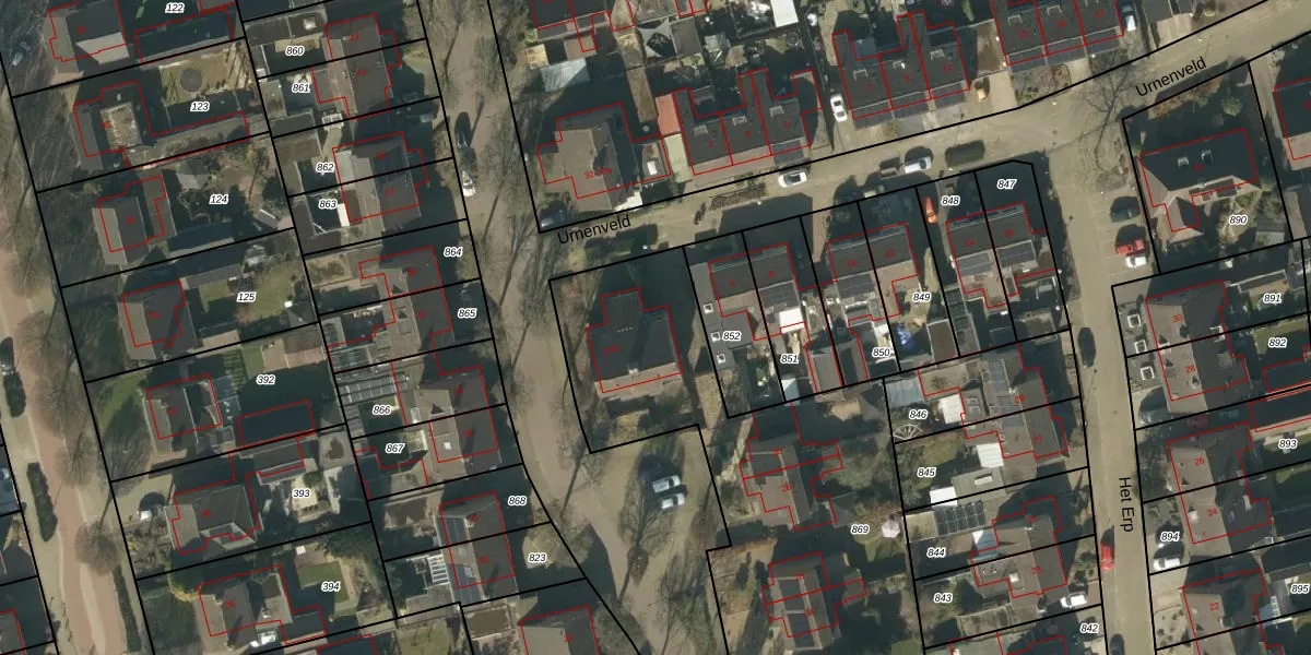 Het perceel waarop Urnenveld 4 staat heeft een oppervlakte van 2245 m². Dit is een zeer groot perceel. De perceeloppervlakte wordt geregistreerd door het Kadaster. Gedetailleerde informatie over de maten van dit perceel kunt u vinden in het rapport Kadastrale kaart met maatvoering van Urnenveld 4.