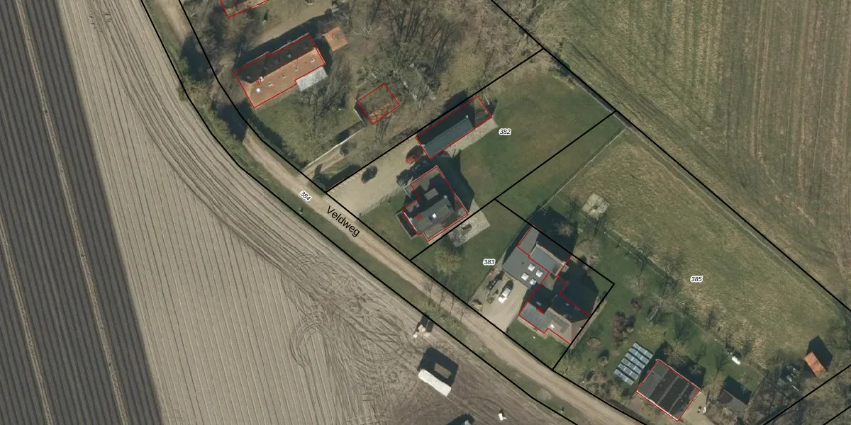 Veldweg 39 is gelegen op kadastraal perceel NTR00L382. Deze kadastrale aanduiding is uniek en wordt gebruikt door het Kadaster om eigendomsrechten en andere zakelijke rechten vast te leggen. Het perceel maakt onderdeel uit van de kadastrale gemeente Nistelrode.