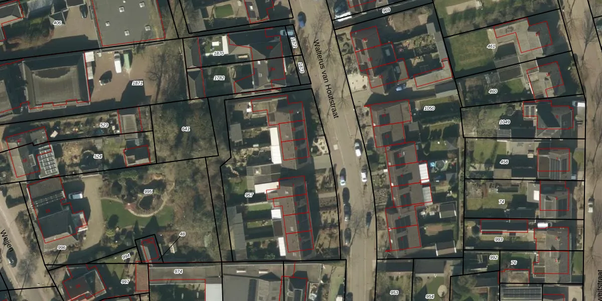 Het perceel waarop Walterus van Houtstraat 9 staat heeft een oppervlakte van 1920 m². Dit is een zeer groot perceel. De perceeloppervlakte wordt geregistreerd door het Kadaster. Gedetailleerde informatie over de maten van dit perceel kunt u vinden in het rapport Kadastrale kaart met maatvoering van Walterus van Houtstraat 9.