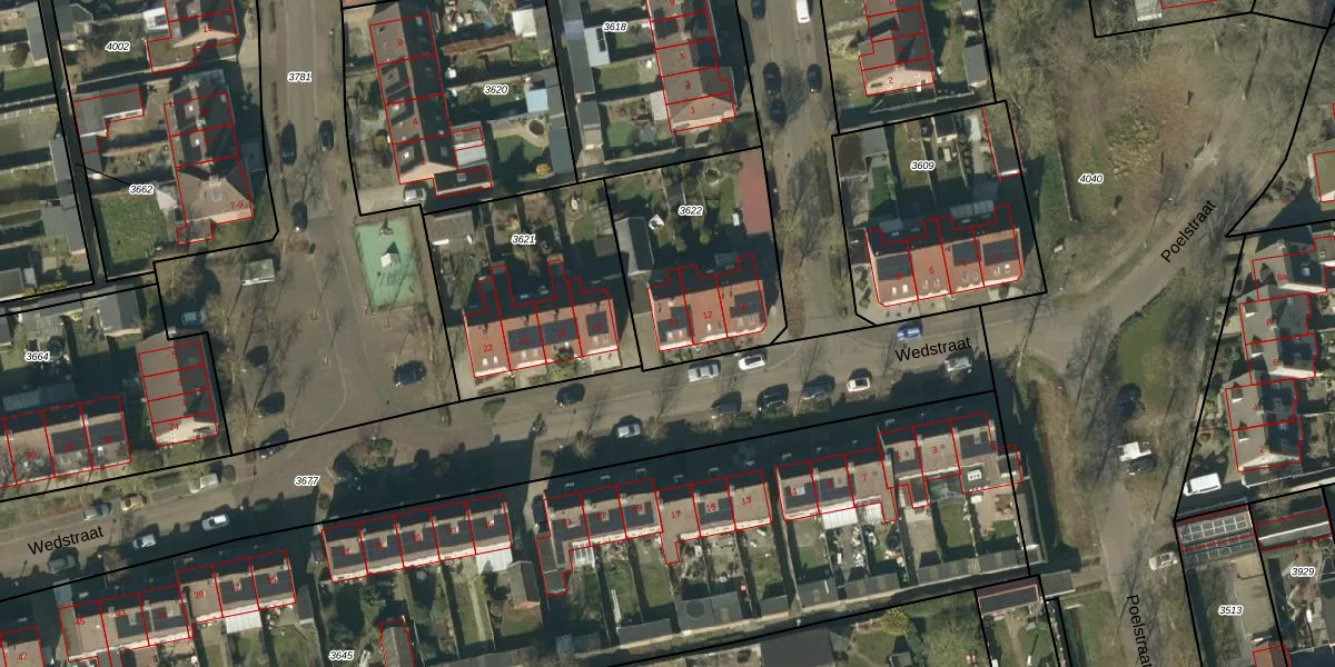 Het perceel waarop Wedstraat 14 staat heeft een oppervlakte van 687 m². Dit is een groot perceel. De perceeloppervlakte wordt geregistreerd door het Kadaster. Gedetailleerde informatie over de maten van dit perceel kunt u vinden in het rapport Kadastrale kaart met maatvoering van Wedstraat 14.