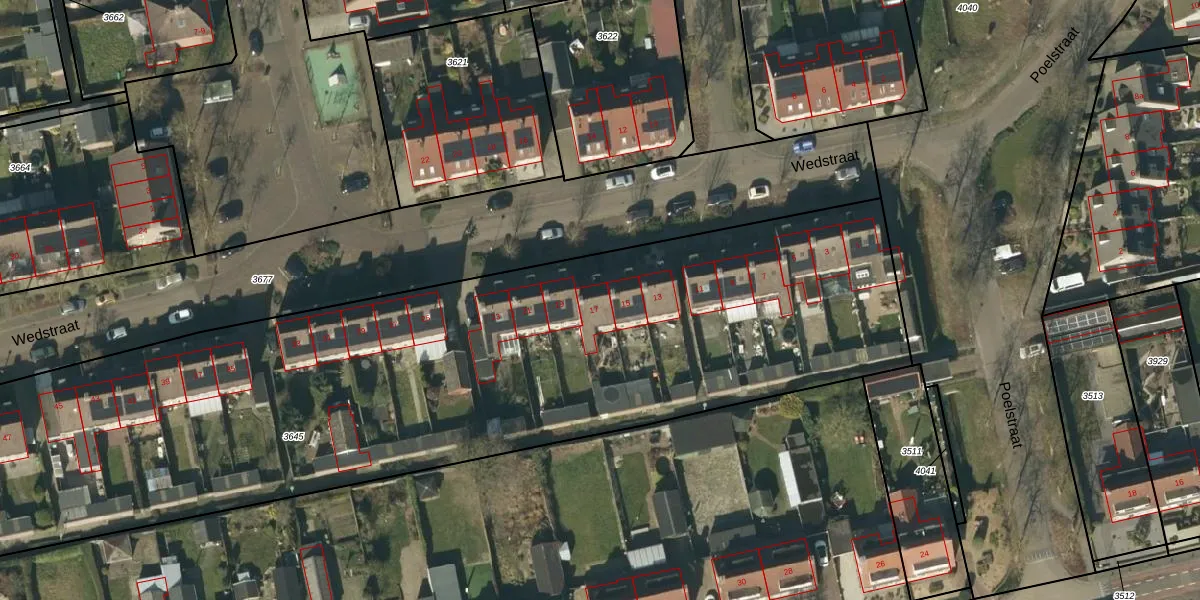 Het perceel waarop Wedstraat 17 staat heeft een oppervlakte van 5326 m². Dit is een zeer groot perceel. De perceeloppervlakte wordt geregistreerd door het Kadaster. Gedetailleerde informatie over de maten van dit perceel kunt u vinden in het rapport Kadastrale kaart met maatvoering van Wedstraat 17.