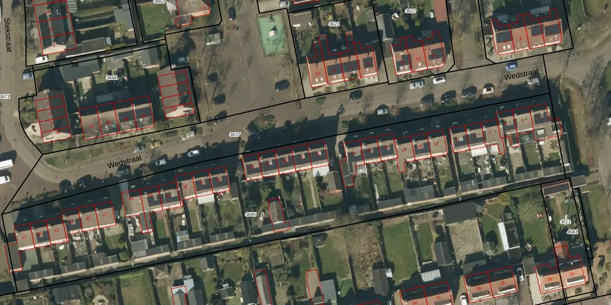 Het perceel waarop Wedstraat 27 staat heeft een oppervlakte van 5326 m². Dit is een zeer groot perceel. De perceeloppervlakte wordt geregistreerd door het Kadaster. Gedetailleerde informatie over de maten van dit perceel kunt u vinden in het rapport Kadastrale kaart met maatvoering van Wedstraat 27.