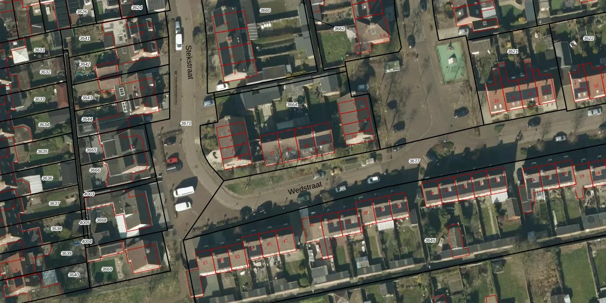 Wedstraat 28 is gelegen op kadastraal perceel NTR00C3664. Deze kadastrale aanduiding is uniek en wordt gebruikt door het Kadaster om eigendomsrechten en andere zakelijke rechten vast te leggen. Het perceel maakt onderdeel uit van de kadastrale gemeente Nistelrode.