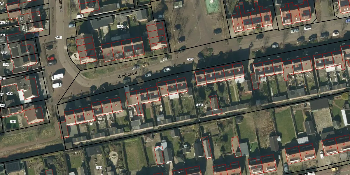 Wedstraat 37 is gelegen op kadastraal perceel NTR00C3645. Deze kadastrale aanduiding is uniek en wordt gebruikt door het Kadaster om eigendomsrechten en andere zakelijke rechten vast te leggen. Het perceel maakt onderdeel uit van de kadastrale gemeente Nistelrode.