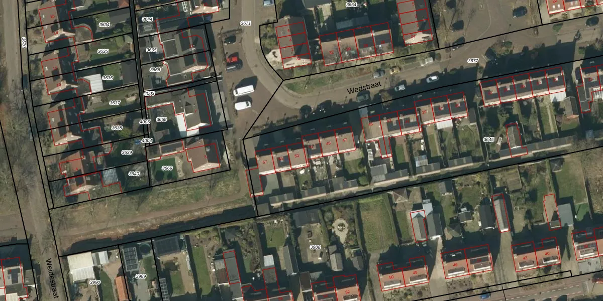 Wedstraat 53 is gelegen op kadastraal perceel NTR00C3645. Deze kadastrale aanduiding is uniek en wordt gebruikt door het Kadaster om eigendomsrechten en andere zakelijke rechten vast te leggen. Het perceel maakt onderdeel uit van de kadastrale gemeente Nistelrode.
