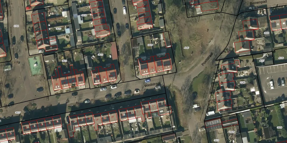 Het perceel waarop Wedstraat 8 staat heeft een oppervlakte van 803 m². Dit is een groot perceel. De perceeloppervlakte wordt geregistreerd door het Kadaster. Gedetailleerde informatie over de maten van dit perceel kunt u vinden in het rapport Kadastrale kaart met maatvoering van Wedstraat 8.