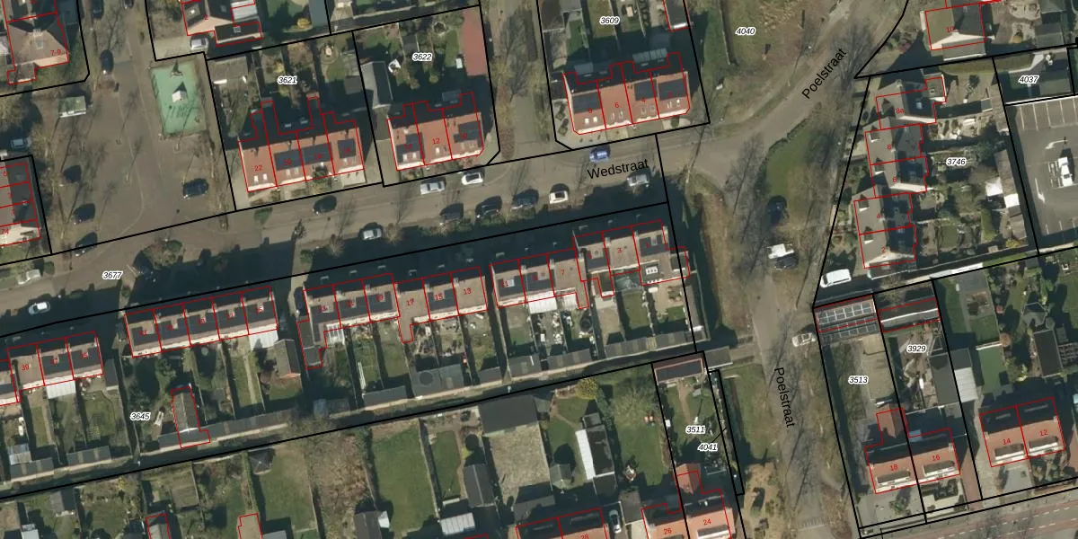 Wedstraat 9 is gelegen op kadastraal perceel NTR00C3645. Deze kadastrale aanduiding is uniek en wordt gebruikt door het Kadaster om eigendomsrechten en andere zakelijke rechten vast te leggen. Het perceel maakt onderdeel uit van de kadastrale gemeente Nistelrode.