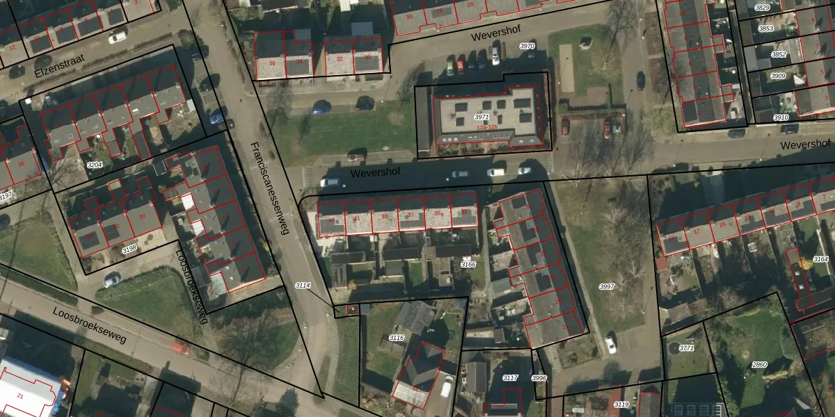Wevershof 37 is gelegen op kadastraal perceel NTR00C3166. Deze kadastrale aanduiding is uniek en wordt gebruikt door het Kadaster om eigendomsrechten en andere zakelijke rechten vast te leggen. Het perceel maakt onderdeel uit van de kadastrale gemeente Nistelrode.