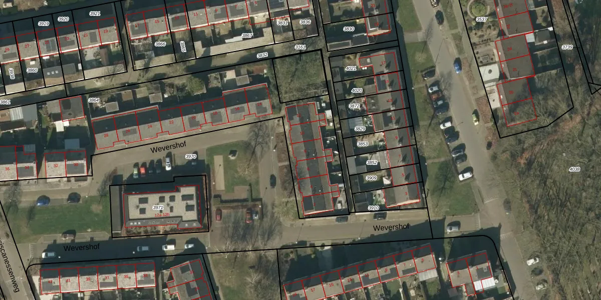Wevershof 8 is gelegen op kadastraal perceel NTR00C3864. Deze kadastrale aanduiding is uniek en wordt gebruikt door het Kadaster om eigendomsrechten en andere zakelijke rechten vast te leggen. Het perceel maakt onderdeel uit van de kadastrale gemeente Nistelrode.