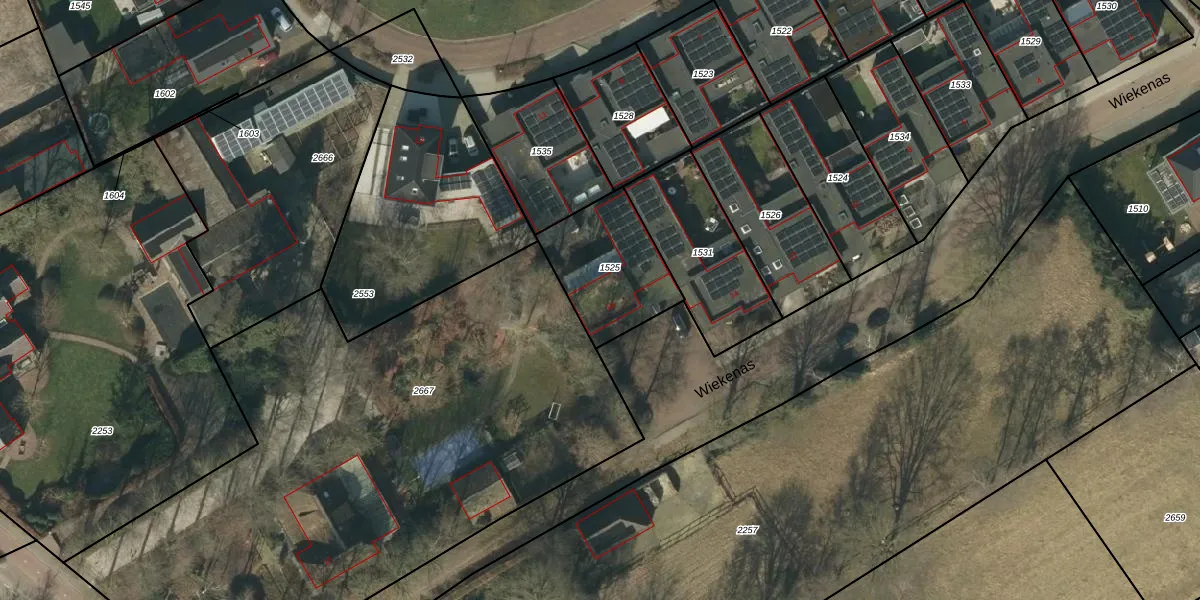 Het perceel waarop Wiekenas 16 staat heeft een oppervlakte van 362 m². Dit is een groot perceel. De perceeloppervlakte wordt geregistreerd door het Kadaster. Gedetailleerde informatie over de maten van dit perceel kunt u vinden in het rapport Kadastrale kaart met maatvoering van Wiekenas 16.