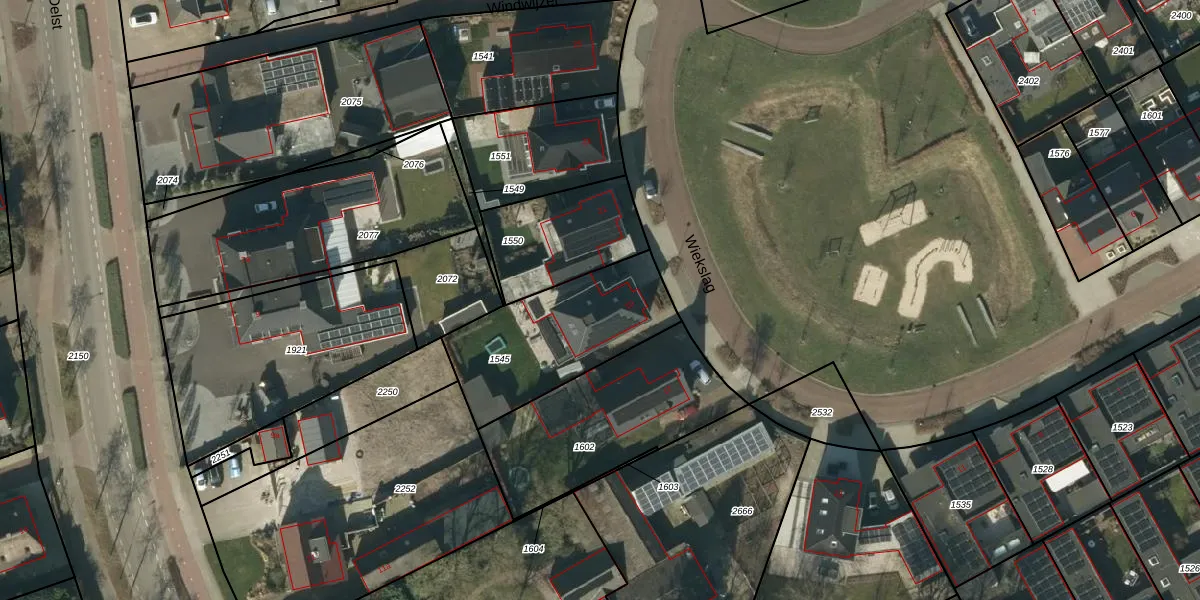 Het perceel waarop Wiekslag 19 staat heeft een oppervlakte van 577 m². Dit is een groot perceel. De perceeloppervlakte wordt geregistreerd door het Kadaster. Gedetailleerde informatie over de maten van dit perceel kunt u vinden in het rapport Kadastrale kaart met maatvoering van Wiekslag 19.
