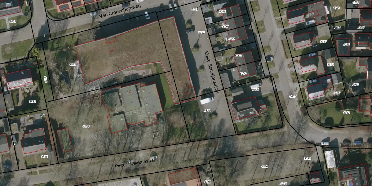 Het perceel waarop Eelke Scherjonstrjitte 1 staat heeft een oppervlakte van 1380 m². Dit is een zeer groot perceel. De perceeloppervlakte wordt geregistreerd door het Kadaster. Gedetailleerde informatie over de maten van dit perceel kunt u vinden in het rapport Kadastrale kaart met maatvoering van Eelke Scherjonstrjitte 1.