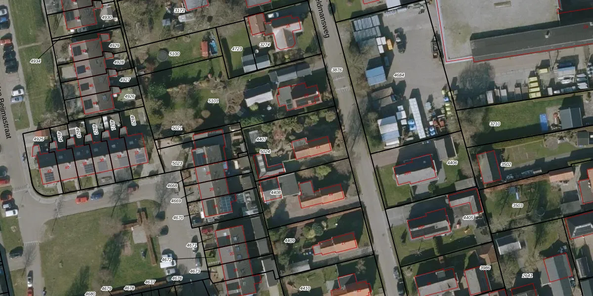 Gebruik de zoekbalk of klik op een perceel voor informatie over de adressen binnen dit perceel.