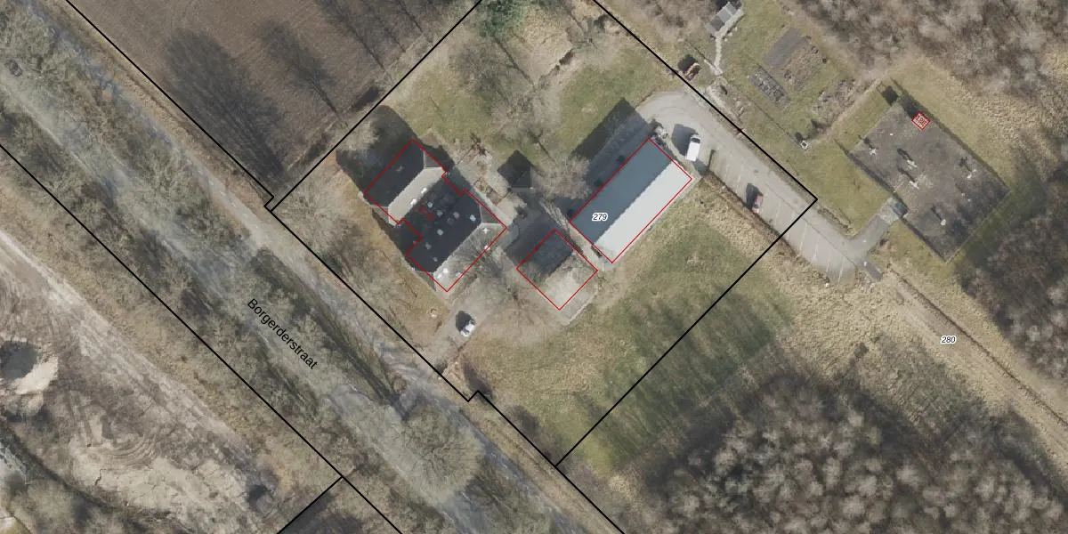 Het perceel waarop Borgerderstraat 13-a staat heeft een oppervlakte van 5100 m². Dit is een zeer groot perceel. De perceeloppervlakte wordt geregistreerd door het Kadaster. Gedetailleerde informatie over de maten van dit perceel kunt u vinden in het rapport Kadastrale kaart met maatvoering van Borgerderstraat 13-a.