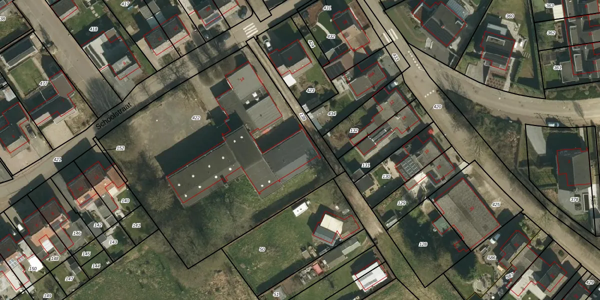 Schoolstraat 14-E is gelegen op kadastraal perceel MGT02Y422. Deze kadastrale aanduiding is uniek en wordt gebruikt door het Kadaster om eigendomsrechten en andere zakelijke rechten vast te leggen. Het perceel maakt onderdeel uit van de kadastrale gemeente Margraten.