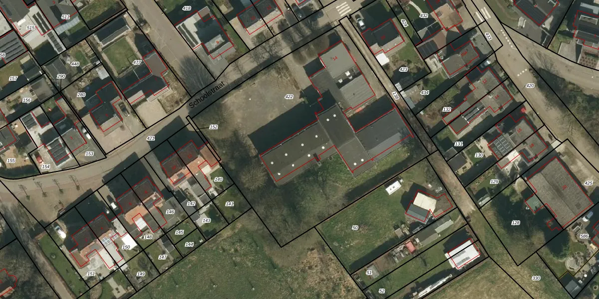 Het perceel waarop Schoolstraat 14-H staat heeft een oppervlakte van 3150 m². Dit is een zeer groot perceel. De perceeloppervlakte wordt geregistreerd door het Kadaster. Gedetailleerde informatie over de maten van dit perceel kunt u vinden in het rapport Kadastrale kaart met maatvoering van Schoolstraat 14-H.