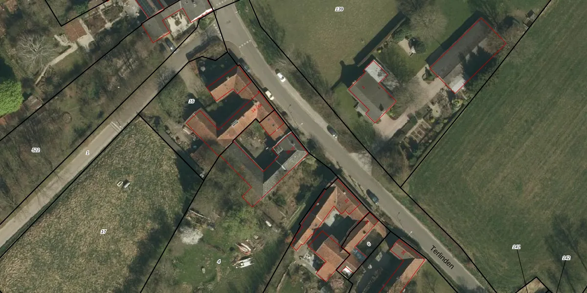 Het perceel waarop Terlinden 20 staat heeft een oppervlakte van 4130 m². Dit is een zeer groot perceel. De perceeloppervlakte wordt geregistreerd door het Kadaster. Gedetailleerde informatie over de maten van dit perceel kunt u vinden in het rapport Kadastrale kaart met maatvoering van Terlinden 20.
