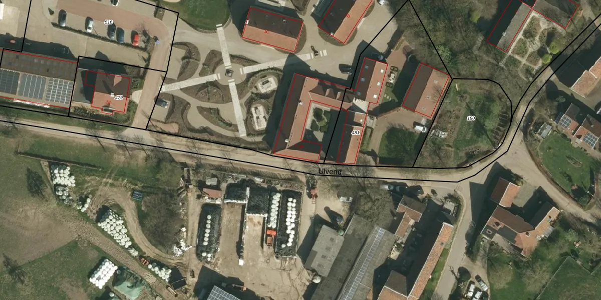 Het perceel waarop Ulvend 1-A staat heeft een oppervlakte van 6,0 ha. Dit is een zeer groot perceel. De perceeloppervlakte wordt geregistreerd door het Kadaster. Gedetailleerde informatie over de maten van dit perceel kunt u vinden in het rapport Kadastrale kaart met maatvoering van Ulvend 1-A.