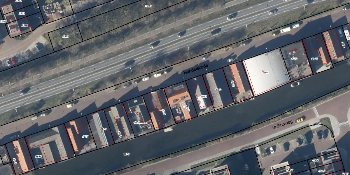 Het perceel waarop Handelskade 16 staat heeft een oppervlakte van 267 m². Dit is een middelgroot perceel. De perceeloppervlakte wordt geregistreerd door het Kadaster. Gedetailleerde informatie over de maten van dit perceel kunt u vinden in het rapport Kadastrale kaart met maatvoering van Handelskade 16.