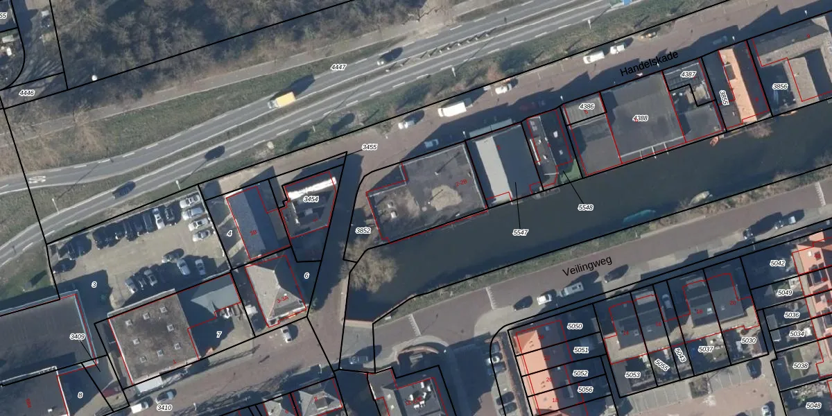 Het perceel waarop Handelskade 2-A staat heeft een oppervlakte van 555 m². Dit is een groot perceel. De perceeloppervlakte wordt geregistreerd door het Kadaster. Gedetailleerde informatie over de maten van dit perceel kunt u vinden in het rapport Kadastrale kaart met maatvoering van Handelskade 2-A.