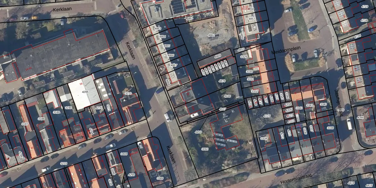 Het perceel waarop Kerklaan 33 staat heeft een oppervlakte van 386 m². Dit is een groot perceel. De perceeloppervlakte wordt geregistreerd door het Kadaster. Gedetailleerde informatie over de maten van dit perceel kunt u vinden in het rapport Kadastrale kaart met maatvoering van Kerklaan 33.