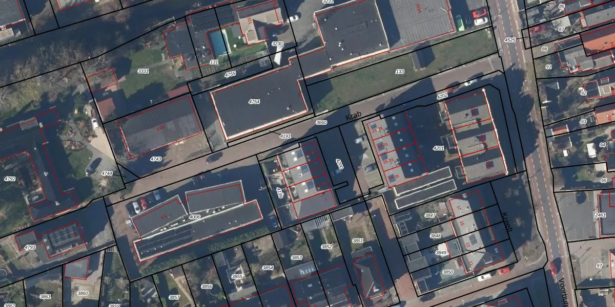 Het perceel waarop Krab 19 staat heeft een oppervlakte van 480 m². Dit is een groot perceel. De perceeloppervlakte wordt geregistreerd door het Kadaster. Gedetailleerde informatie over de maten van dit perceel kunt u vinden in het rapport Kadastrale kaart met maatvoering van Krab 19.