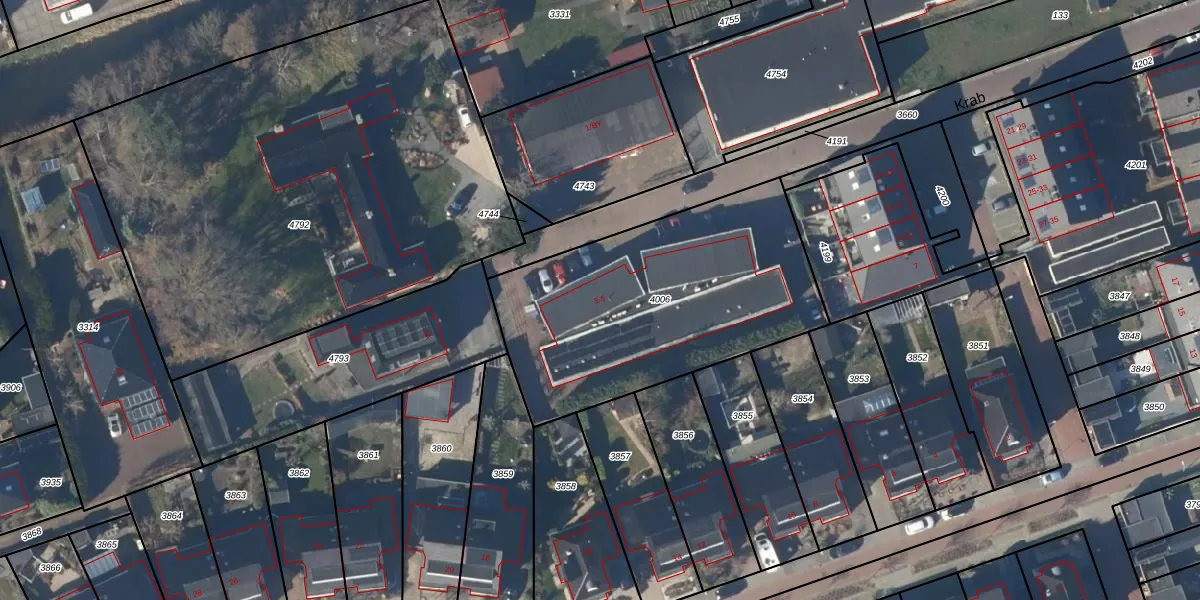 Krab 3 is gelegen op kadastraal perceel LGD00B4006. Deze kadastrale aanduiding is uniek en wordt gebruikt door het Kadaster om eigendomsrechten en andere zakelijke rechten vast te leggen. Het perceel maakt onderdeel uit van de kadastrale gemeente Langedijk.