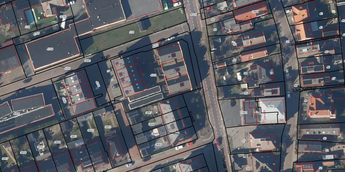 Krab 43 is gelegen op kadastraal perceel LGD00B4201. Deze kadastrale aanduiding is uniek en wordt gebruikt door het Kadaster om eigendomsrechten en andere zakelijke rechten vast te leggen. Het perceel maakt onderdeel uit van de kadastrale gemeente Langedijk.
