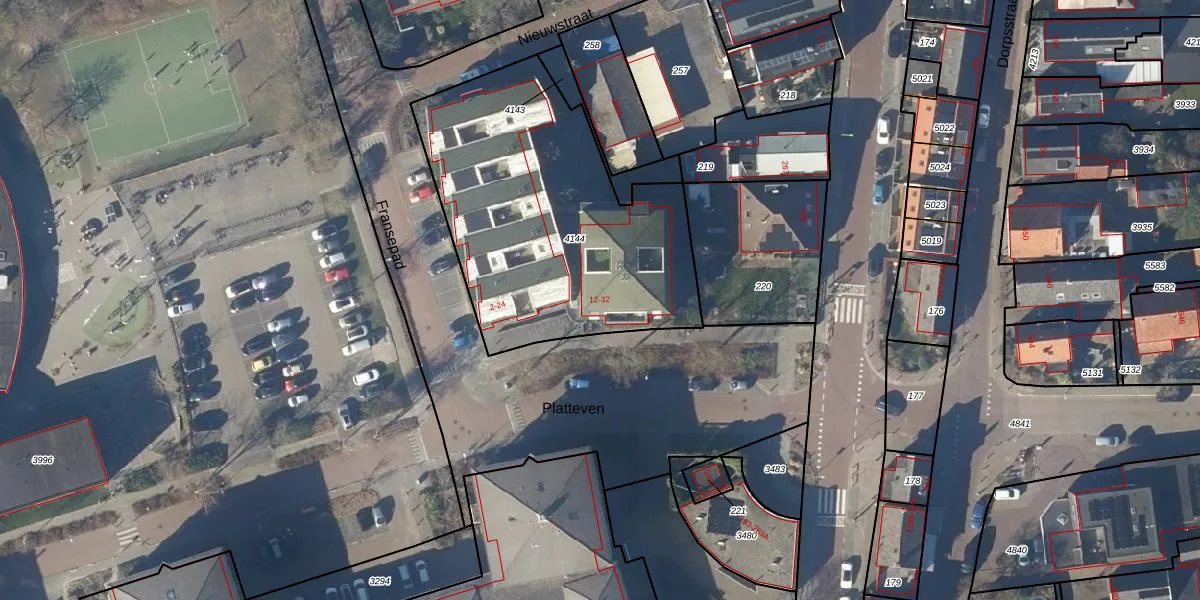 Platteven 12 is gelegen op kadastraal perceel LGD00B4144. Deze kadastrale aanduiding is uniek en wordt gebruikt door het Kadaster om eigendomsrechten en andere zakelijke rechten vast te leggen. Het perceel maakt onderdeel uit van de kadastrale gemeente Langedijk.