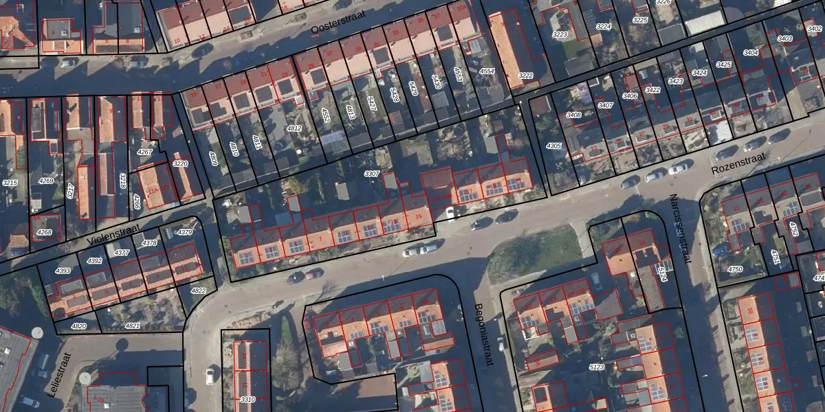Het perceel waarop Rozenstraat 15 staat heeft een oppervlakte van 1780 m². Dit is een zeer groot perceel. De perceeloppervlakte wordt geregistreerd door het Kadaster. Gedetailleerde informatie over de maten van dit perceel kunt u vinden in het rapport Kadastrale kaart met maatvoering van Rozenstraat 15.