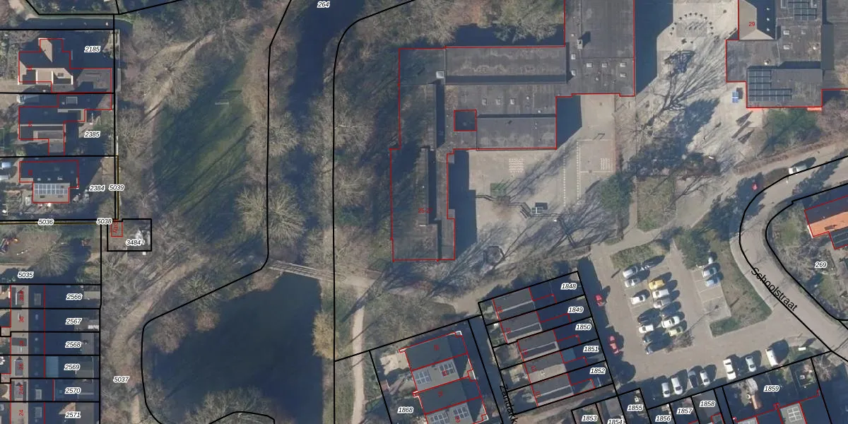 Het perceel waarop Schoolstraat 25 staat heeft een oppervlakte van 1,8 ha. Dit is een zeer groot perceel. De perceeloppervlakte wordt geregistreerd door het Kadaster. Gedetailleerde informatie over de maten van dit perceel kunt u vinden in het rapport Kadastrale kaart met maatvoering van Schoolstraat 25.