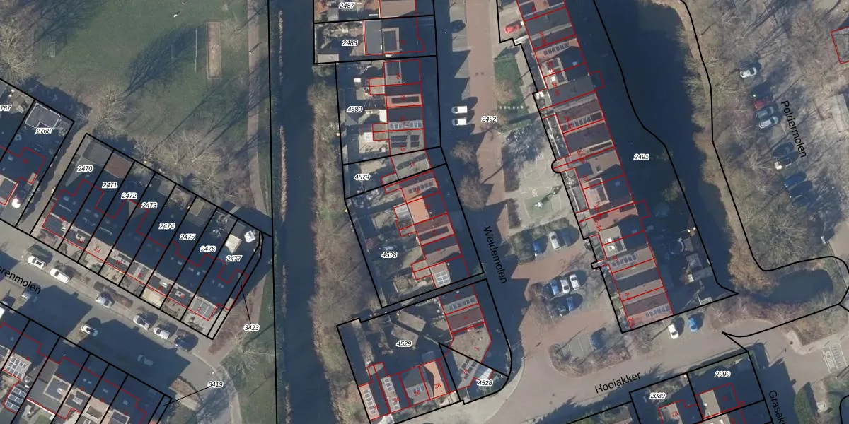 Het perceel waarop Weidemolen 13 staat heeft een oppervlakte van 692 m². Dit is een groot perceel. De perceeloppervlakte wordt geregistreerd door het Kadaster. Gedetailleerde informatie over de maten van dit perceel kunt u vinden in het rapport Kadastrale kaart met maatvoering van Weidemolen 13.