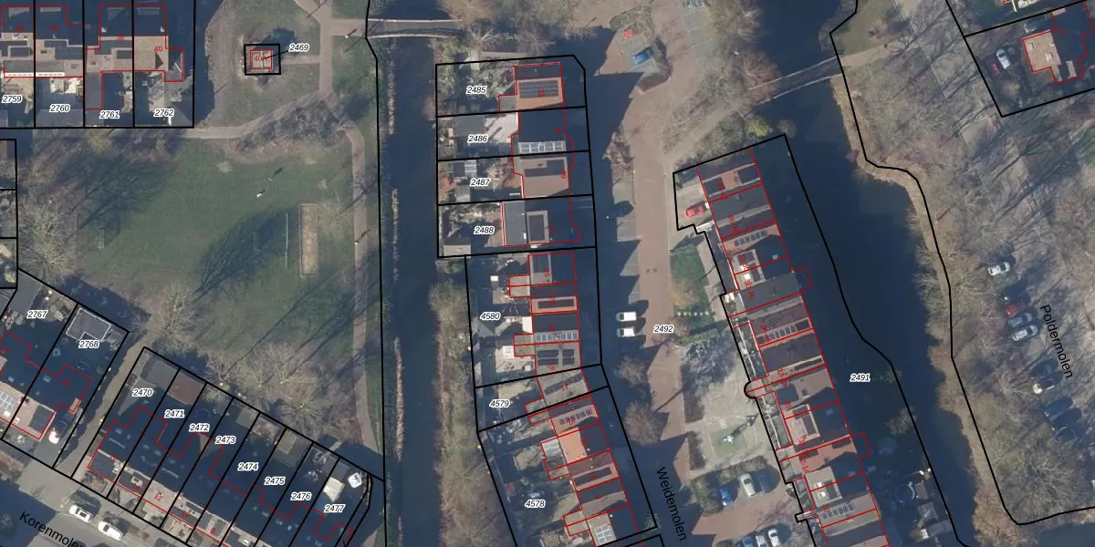 Het perceel waarop Weidemolen 25 staat heeft een oppervlakte van 541 m². Dit is een groot perceel. De perceeloppervlakte wordt geregistreerd door het Kadaster. Gedetailleerde informatie over de maten van dit perceel kunt u vinden in het rapport Kadastrale kaart met maatvoering van Weidemolen 25.