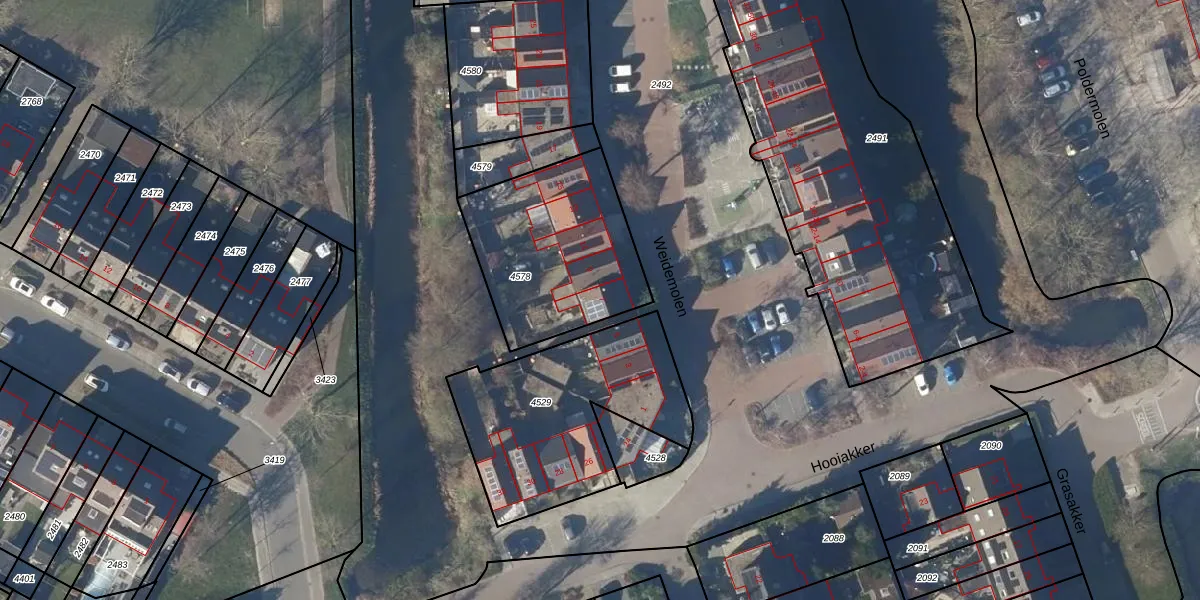 Het perceel waarop Weidemolen 7 staat heeft een oppervlakte van 692 m². Dit is een groot perceel. De perceeloppervlakte wordt geregistreerd door het Kadaster. Gedetailleerde informatie over de maten van dit perceel kunt u vinden in het rapport Kadastrale kaart met maatvoering van Weidemolen 7.