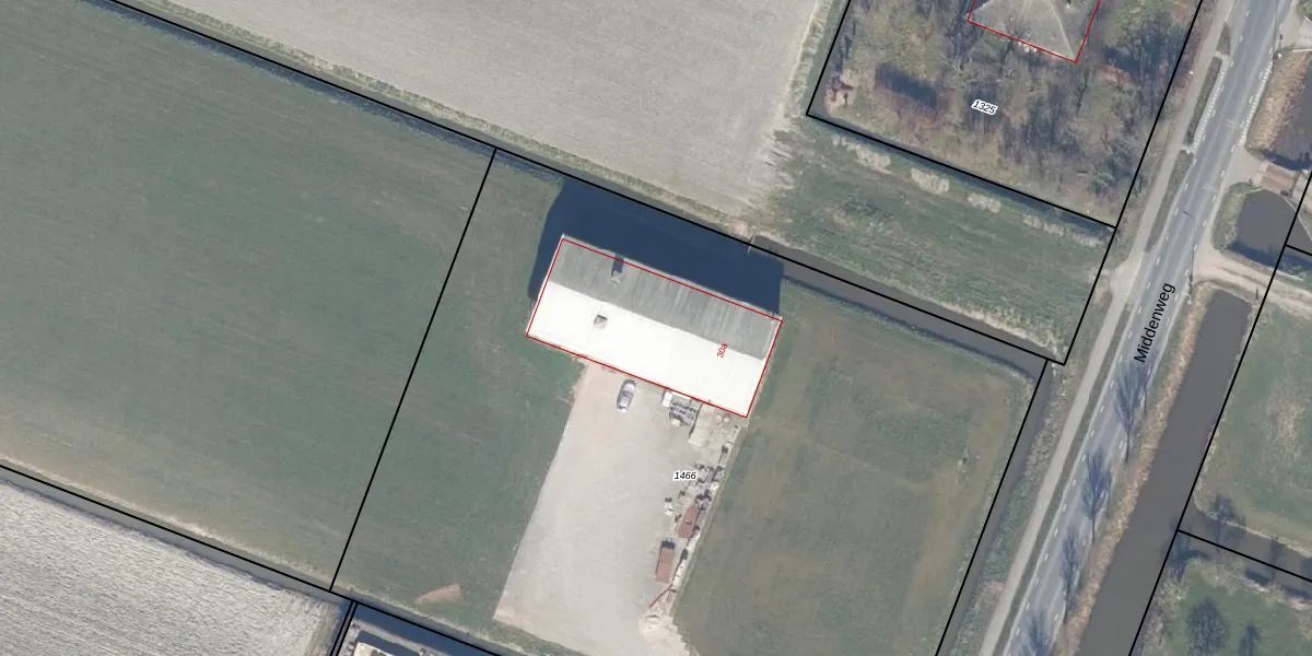 Het perceel waarop Middenweg 30-a staat heeft een oppervlakte van 6500 m². Dit is een zeer groot perceel. De perceeloppervlakte wordt geregistreerd door het Kadaster. Gedetailleerde informatie over de maten van dit perceel kunt u vinden in het rapport Kadastrale kaart met maatvoering van Middenweg 30-a.