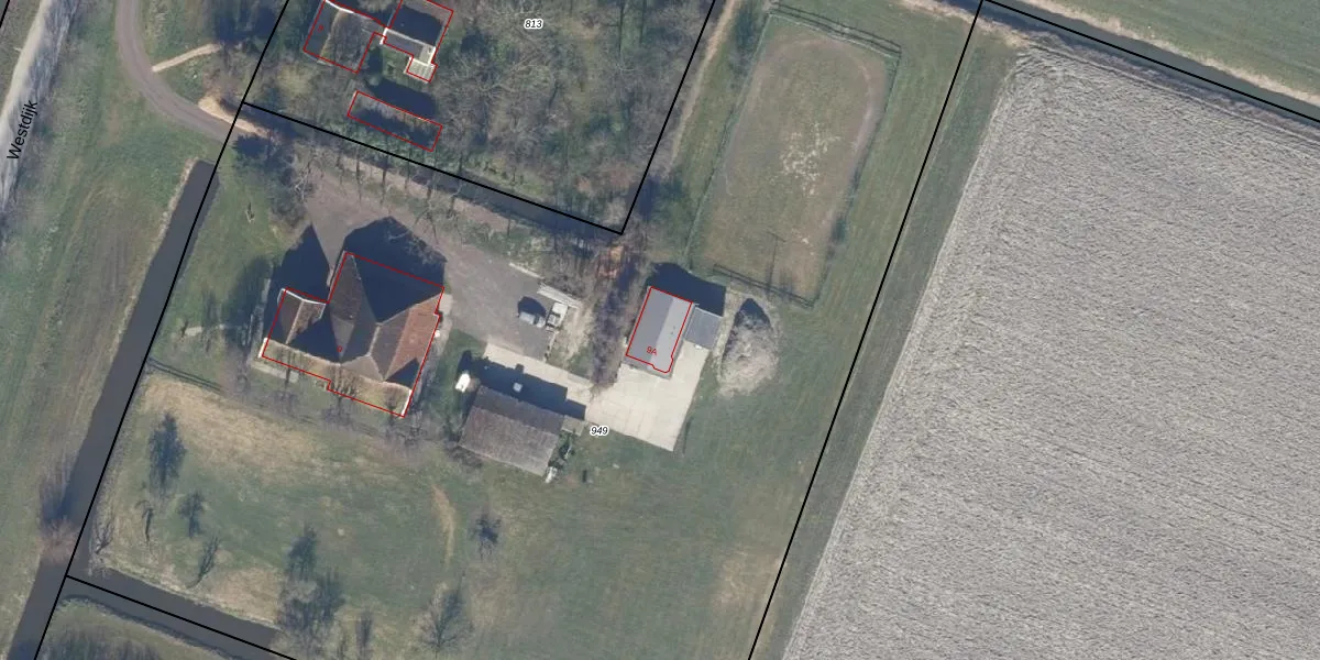 Het perceel waarop Westdijk 9-A staat heeft een oppervlakte van 9860 m². Dit is een zeer groot perceel. De perceeloppervlakte wordt geregistreerd door het Kadaster. Gedetailleerde informatie over de maten van dit perceel kunt u vinden in het rapport Kadastrale kaart met maatvoering van Westdijk 9-A.