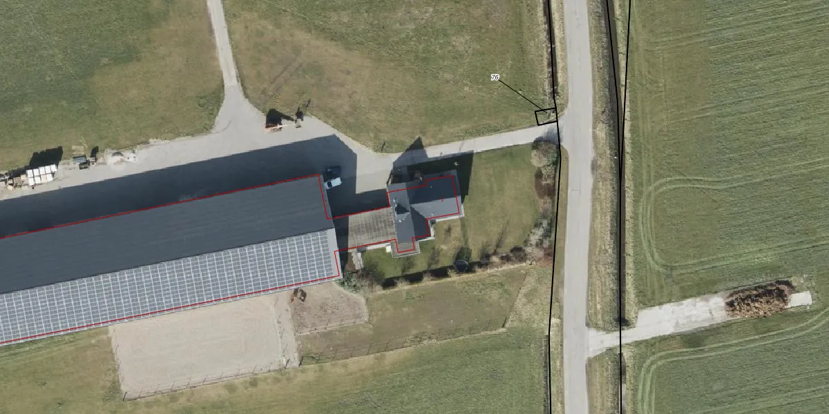 Het adres ligt op het perceel NBK01-I-77, dat zich in de kadastrale gemeente Noordbroek bevindt. De oppervlakte van het perceel is 16,9 ha. Dat is groter dan gemiddeld in Noordbroek, waar de gemiddelde perceeloppervlakte op 1,7 ha ligt. Het grootste perceel in de kadastrale gemeente is 41,3 ha. Het kleinste perceel heeft een oppervlakte van 2 m². Dit is het enige adres dat aanwezig is op het perceel. De huidige grenzen van het perceel zijn digitaal in de Basisregistratie Kadaster (BRK) geregistreerd op 22-12-1998.