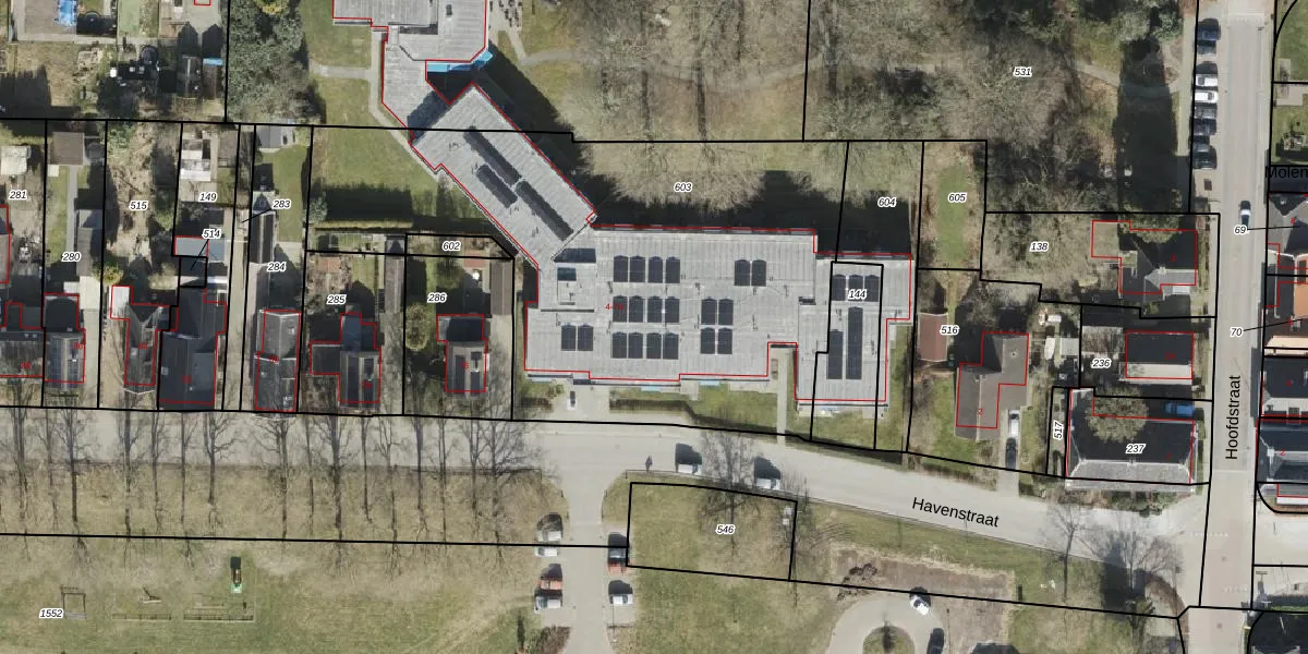 Het perceel waarop Havenstraat 40 staat heeft een oppervlakte van 2682 m². Dit is een zeer groot perceel. De perceeloppervlakte wordt geregistreerd door het Kadaster. Gedetailleerde informatie over de maten van dit perceel kunt u vinden in het rapport Kadastrale kaart met maatvoering van Havenstraat 40.