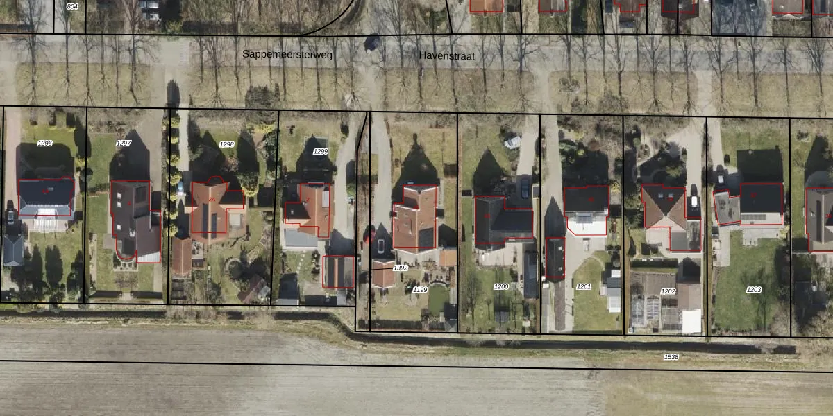 Gebruik de zoekbalk of klik op een perceel voor informatie over de adressen binnen dit perceel.