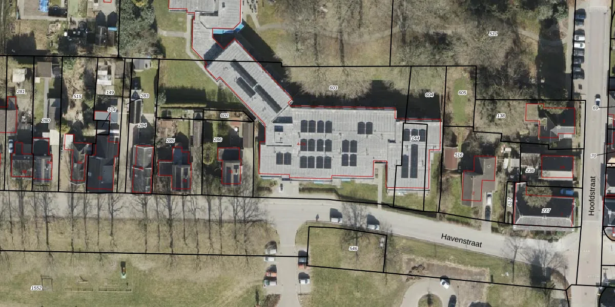 Het perceel waarop Havenstraat 52 staat heeft een oppervlakte van 2682 m². Dit is een zeer groot perceel. De perceeloppervlakte wordt geregistreerd door het Kadaster. Gedetailleerde informatie over de maten van dit perceel kunt u vinden in het rapport Kadastrale kaart met maatvoering van Havenstraat 52.