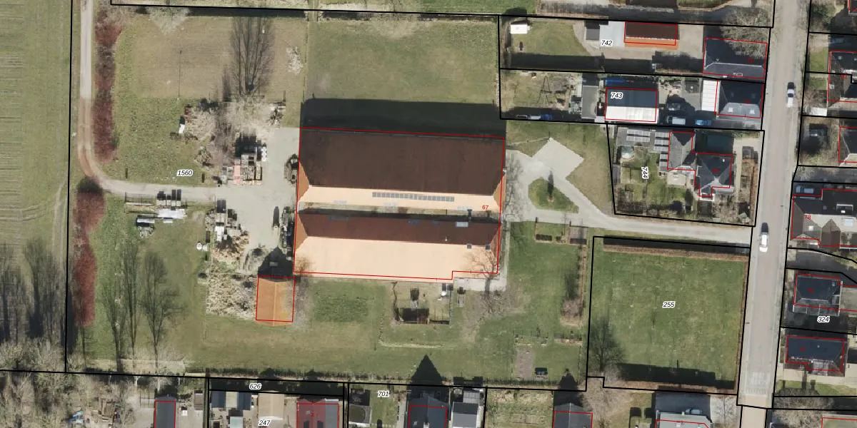 Het perceel waarop Hoofdstraat 67 staat heeft een oppervlakte van 1,1 ha. Dit is een zeer groot perceel. De perceeloppervlakte wordt geregistreerd door het Kadaster. Gedetailleerde informatie over de maten van dit perceel kunt u vinden in het rapport Kadastrale kaart met maatvoering van Hoofdstraat 67.