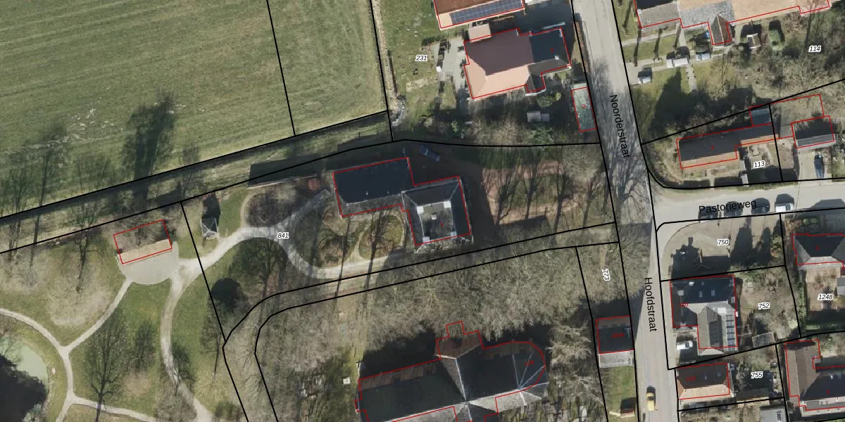 Het perceel waarop Noorderstraat 1 staat heeft een oppervlakte van 2615 m². Dit is een zeer groot perceel. De perceeloppervlakte wordt geregistreerd door het Kadaster. Gedetailleerde informatie over de maten van dit perceel kunt u vinden in het rapport Kadastrale kaart met maatvoering van Noorderstraat 1.